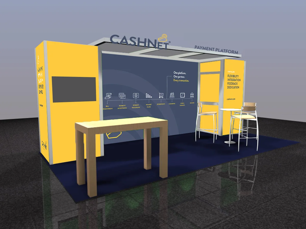 10x20 Tradeshow Booth Design with space for TV on left side panel